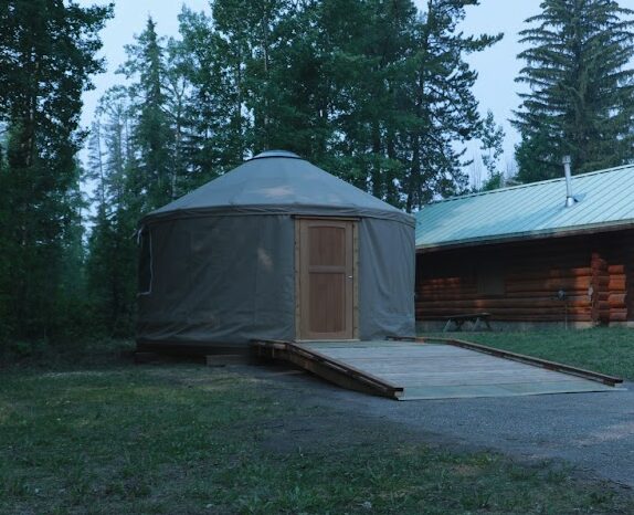 We have three teepees, each with a diameter of 24 feet and an established campsite. There is a cookshack and two outdoor biffies at the site. All teepees have wooden floors.